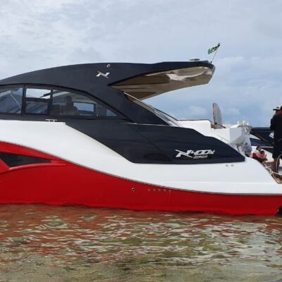 Lancha Focker 40 pés para até 16 passageiros incluindo crianças.